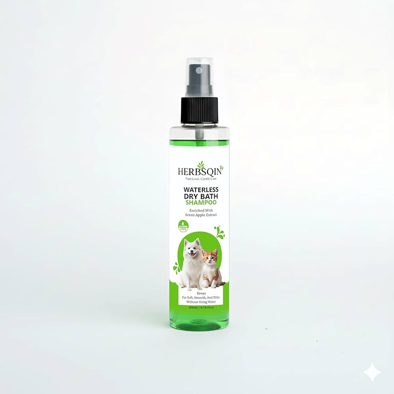 Herbsqin Waterless Dry Bath Shampoo is a convenient and effective grooming solution designed for pets who dislike traditional baths. Enriched with green apple extract, this no-rinse formula helps cleanse dirt, reduce odor, and leave your pet’s coat soft, shiny, and fresh.
